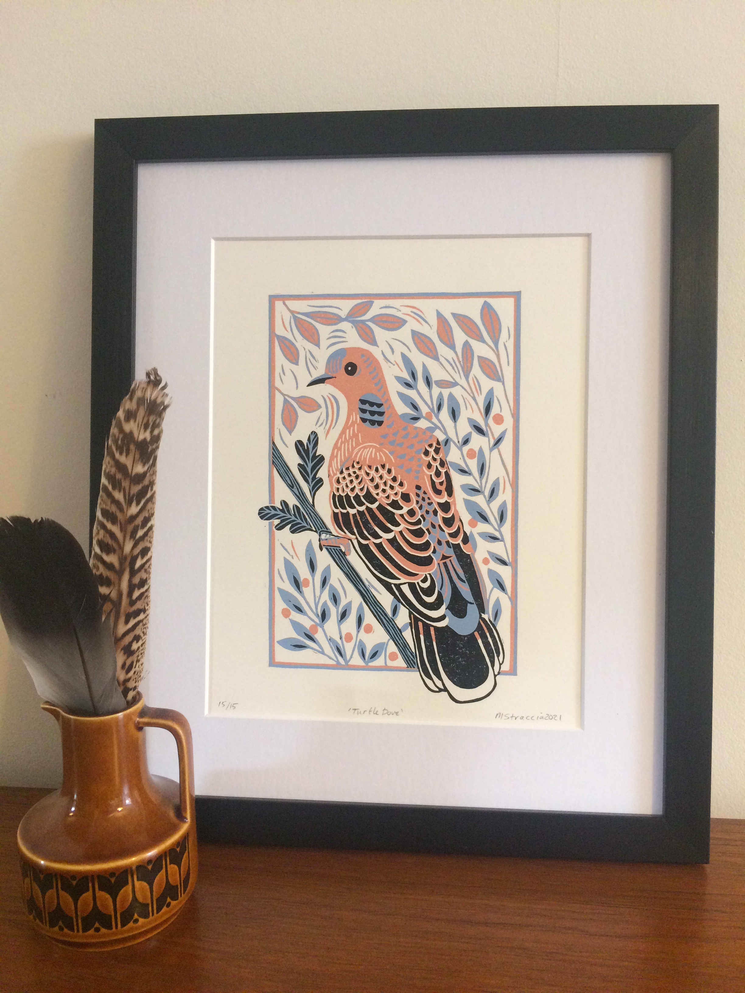 My latest print, ‘Turtle Dove’ is now available to buy from my linoprint shop.