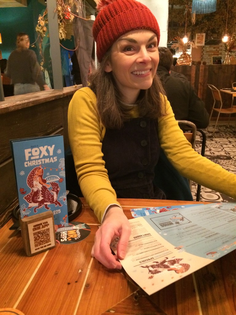 We had a posh pomegranate Bellini for starters (it is Christmas!), some sticky gochujang cauli, some Christmassy chilli cranberry cauli, takoyaki style cauli, winter greens and their famous famous foxy fries. What an absolute treat! Thanks so much to Gabs for looking after us!