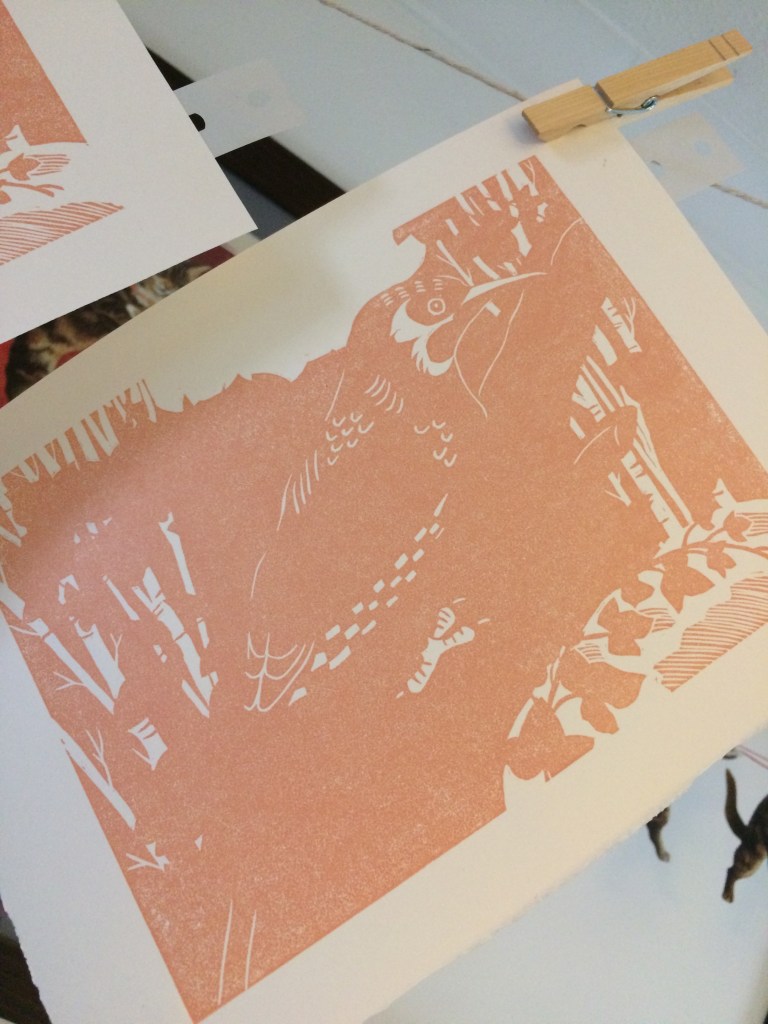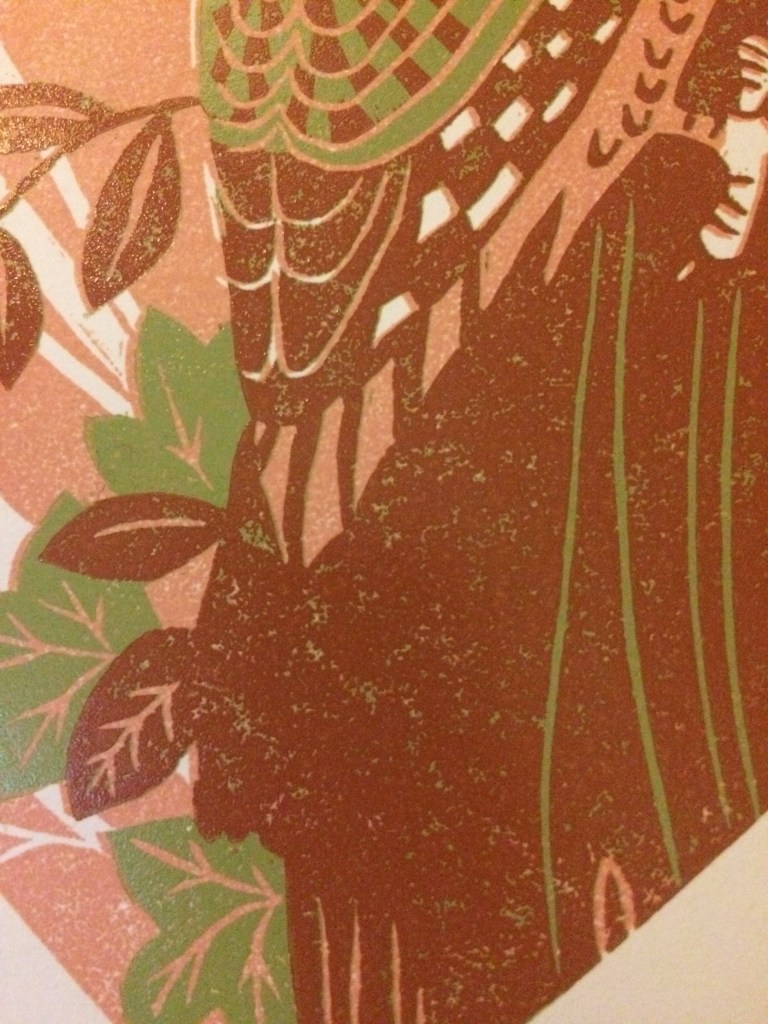 It was annoying. A lot of time goes into carving and printing by hand. In the future, if I know I won’t be able to print for a long time, I will store my paper flat in between glassine sheets. Don’t leave your half finished reduction prints hanging! I learned a lesson by making mistakes and this is something self taught practitioners have to be stoic about. I’m happy I can share what I have learnt with you.