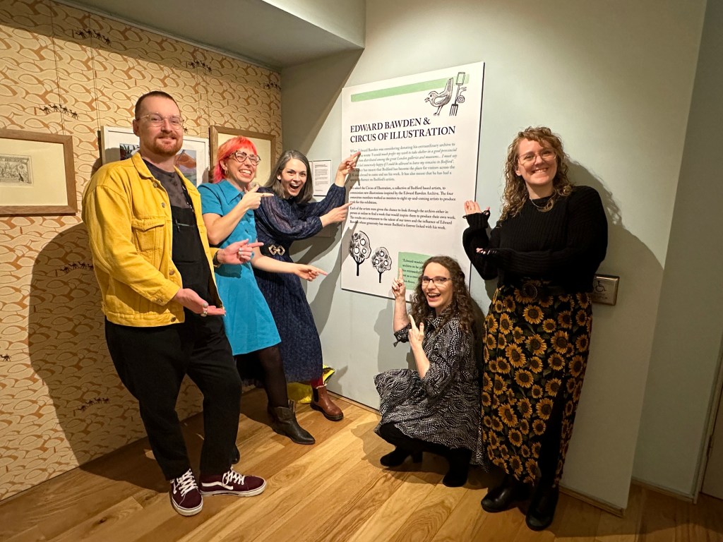 The work that our local illustrators and artists produced is amazing, and I thoroughly recommend that you visit The Higgins to see Edward Bawden and Me and go upstairs to the Bawden Gallery to see Edward Bawden and Circus Of Illustration. You will see that Bedford has some amazing creatives. Check out our special ‘behind the scenes’ website for sketches, animation and process videos of the work.