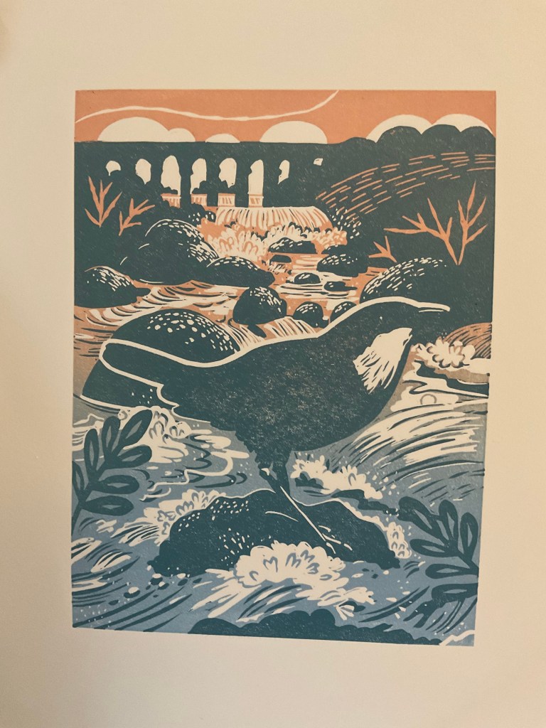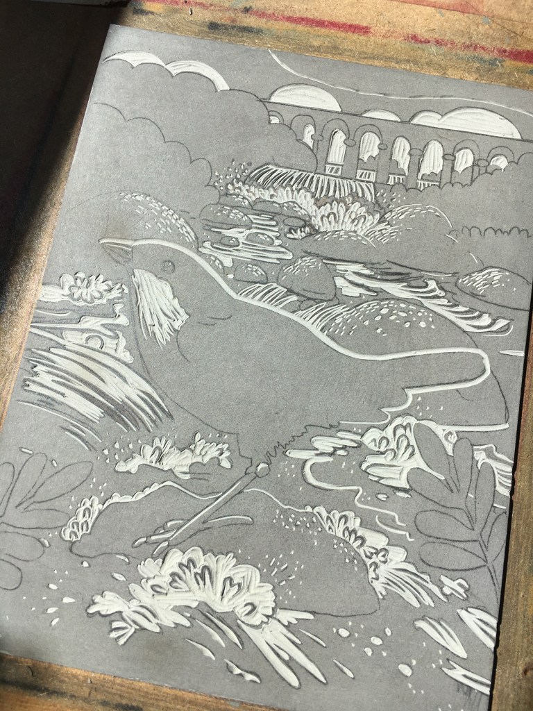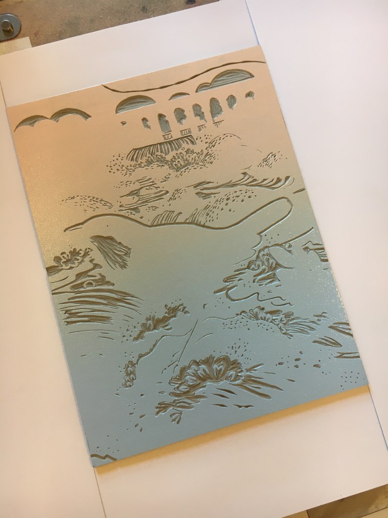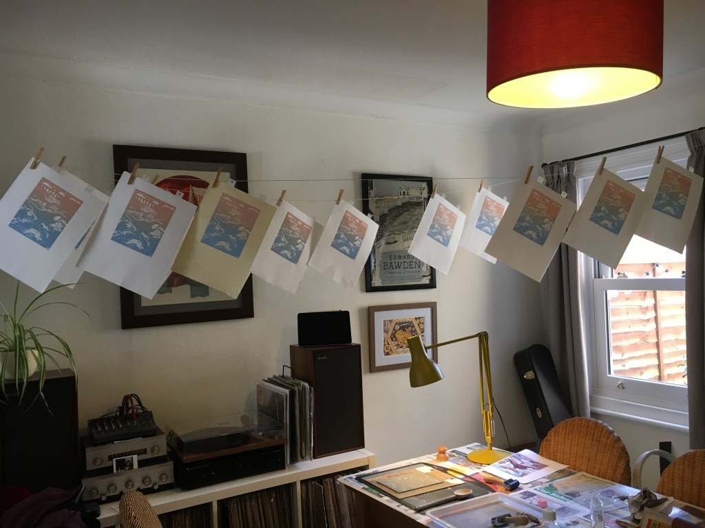 I do a lot of Illustration work for Foster Hill Road Cemetery, so I wanted to include the chapel in my work. You can watch a video of how I made this reduction linoprint. Each colour layer is printed by hand from the same piece of lino.
